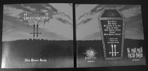 Stickered black digipaks with gold spraypaint, insert and sprayed white CDrs.