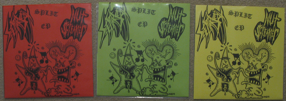 Painstakingly packaged in yellow card covers, with a full colour CDr (pink, green or yellow), a green Snotnosed pin badge, and a
